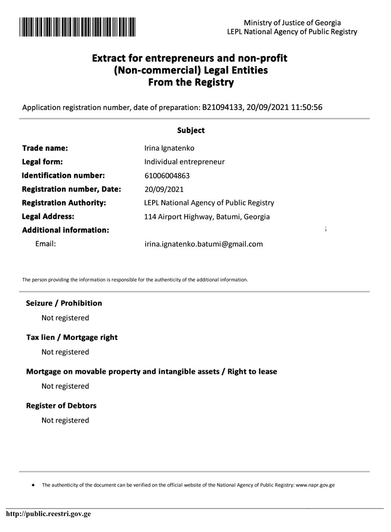 See on the website of the National Agency of Public Registry of the Ministry of Justice of Georgia.