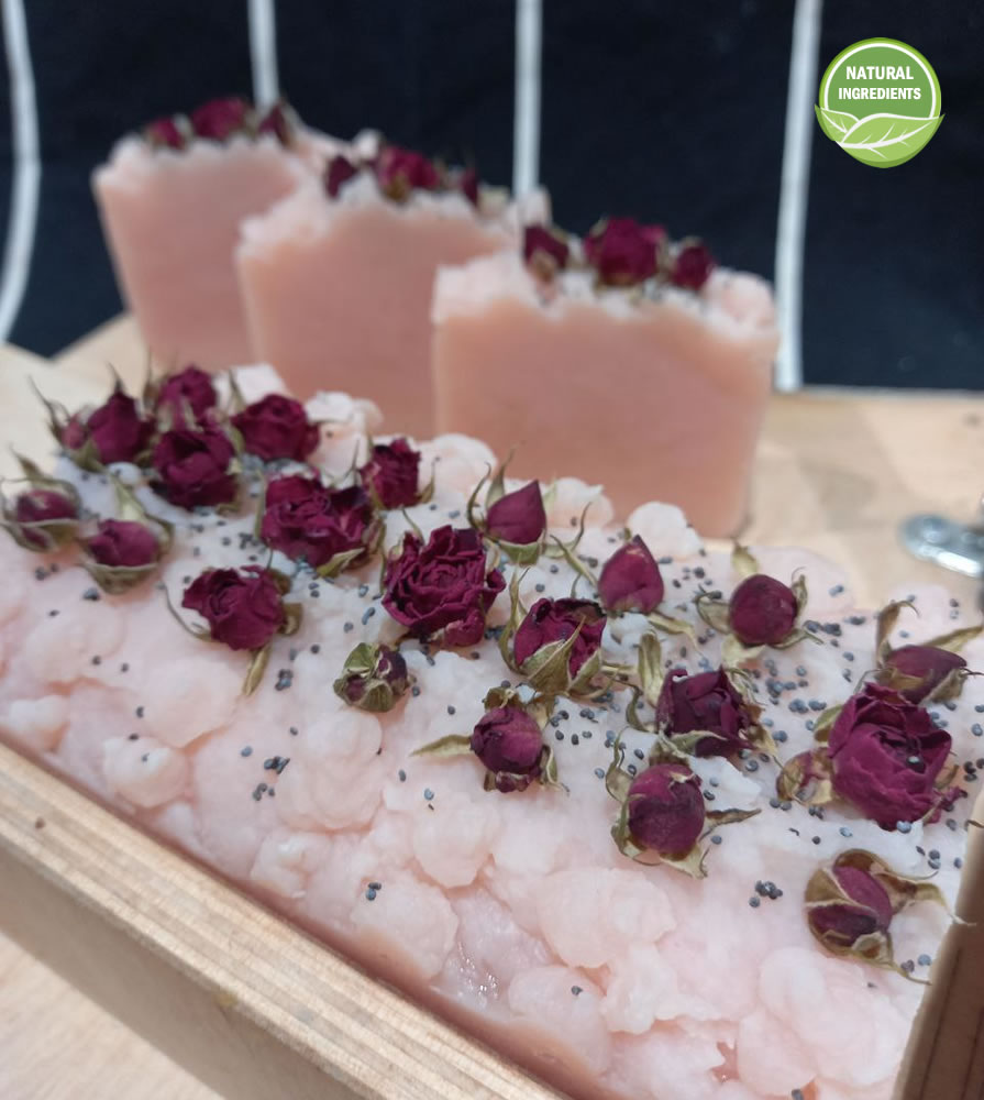 ✨ The geranium and rose essential oils included in the soap's composition regenerate, rejuvenate, help to increase the skin's firmness and elasticity, improve the complexion, and impart an exquisite fragrance.