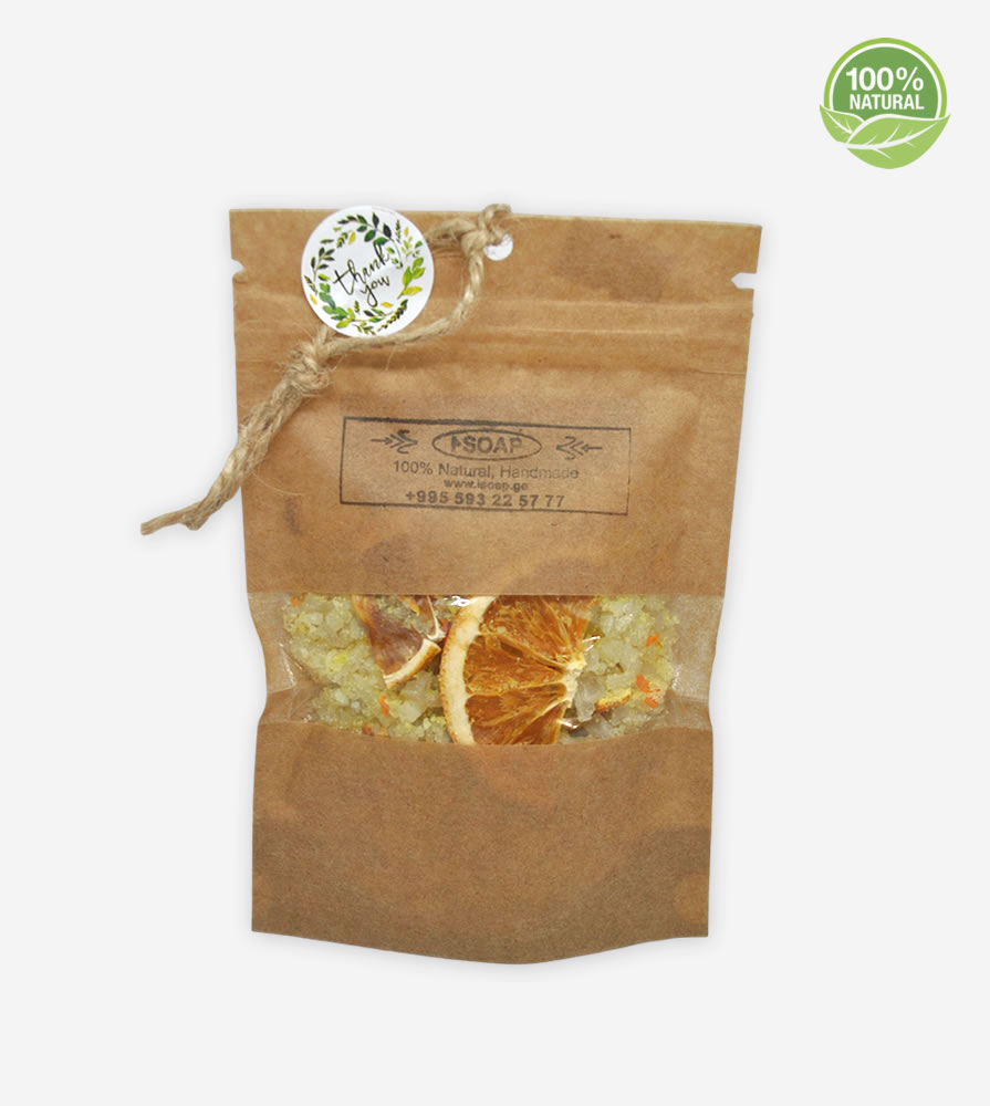 This aromatic bath salt has an anti-cellulite effect. It evens out the skin and makes it elastic. Enriches with vitamins, microelements, zinc and magnesium. Improves skin turgor. Thanks to the turmeric and marigolds included in the composition, it also has outstanding antiseptic properties. The citrus aroma is energizing.